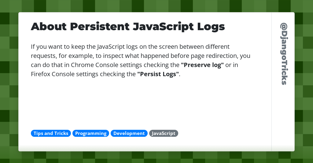 Categories + Accessibility + Architecture + Developer Experience + Frontend + Jokes + Machine Learning + Maps + Programming + Security + Tips and Tricks + User Experience + Wisdom